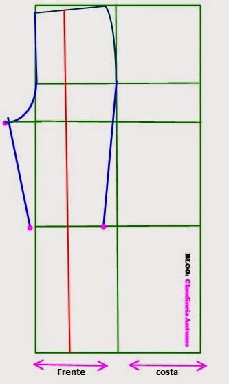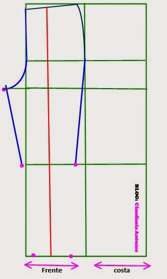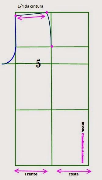 (Linha 1)horizontal 1/2 (meia) circunferência do quadril ( divida a medida do quadril por 2)