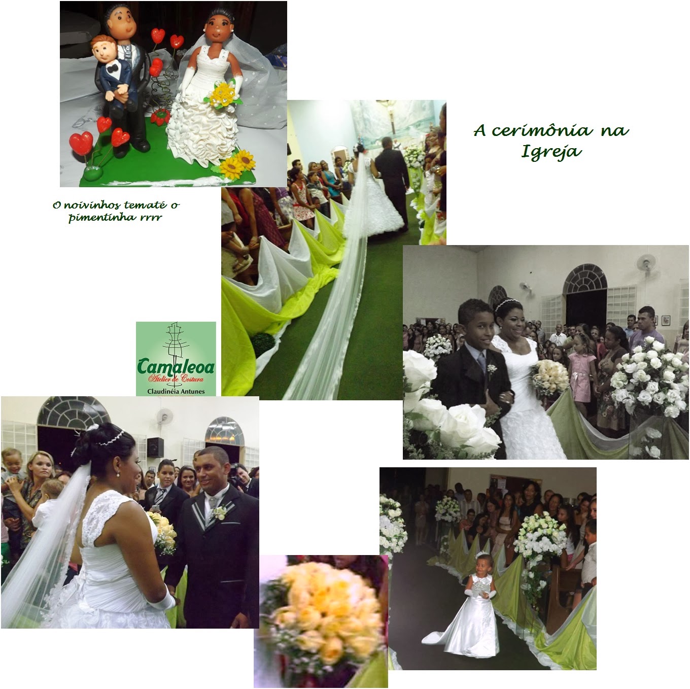 Um pouquinho do Vestido longo ( não e da Camaleoa), os noivinhos, os noivos, a igreja, o buque amarelo, o véu enorme, a decoração, convidados, igreja cheia. Tudo muito lindo .