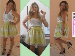 Oi Amores!! Hoje vamos fazer uma saia rodada franzida na cintura, tecido e uma organza branca bordada e para dar o contraste forrei com cetim verde. este e uma postagem que eu já tinha feito, mas foi ficou perdida com a mudança do blog rrsss lembra para o WordPress, então…