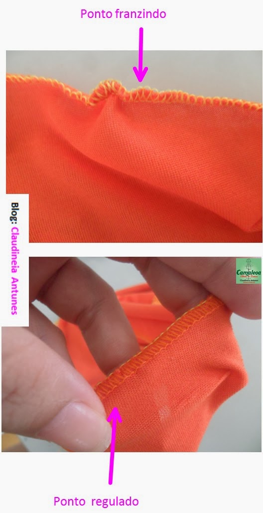 Agora veja que o ponto da overloque o da cor amarela esta folgado, em relação ao laranja chegando a puxar o amarelo o amarelo.