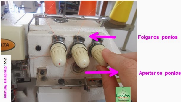 Olhem este botãozinho que estou segurando os três, são os tensores que regula as linhas girando para a esquerda a linha fica mais folgada e girando para a direita a linha fica mais apertada.