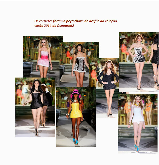 Com certeza a peça chave da coleção da Dsquared2 foram os micro vestidos corpetes