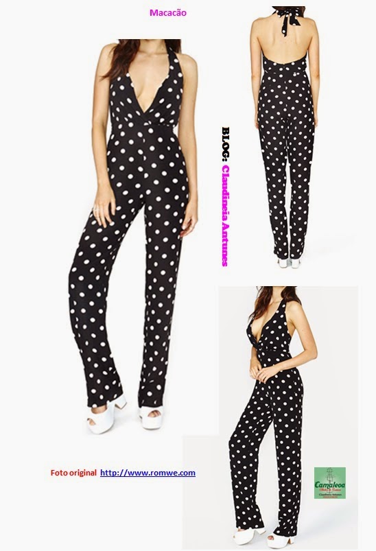 Este macacão de Bolinha Também Frente unica pode ser feito em tecidos mais delicados tipo musceline, seda, crepe, viscose, e malha pois tem a calça tipo pantalona se fizer em um tecido muito grosso pode ficar armado dando muito volume