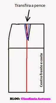 traze novamente as pences, usando como centro a nova linha que foi traçada deixe 1,5 para cada lado