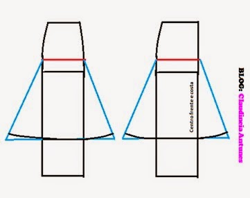 - Transfira o molde base costa com pense ou pode fazer as duas partes separadas frente e costa mais eu fiz as duas partes usando somente um molde tanto para a frente e costa.