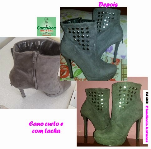 Corta sua bota de cano alto, que ela não usava quase já que aqui onde moramos e um calor dos deuses rrsss e transforma-la em cano baixo. Até que deu certo e não deu muito trabalho e que o material da bota era camurça então deu para costurar ela normalmente na minha maquina reta industrial.
